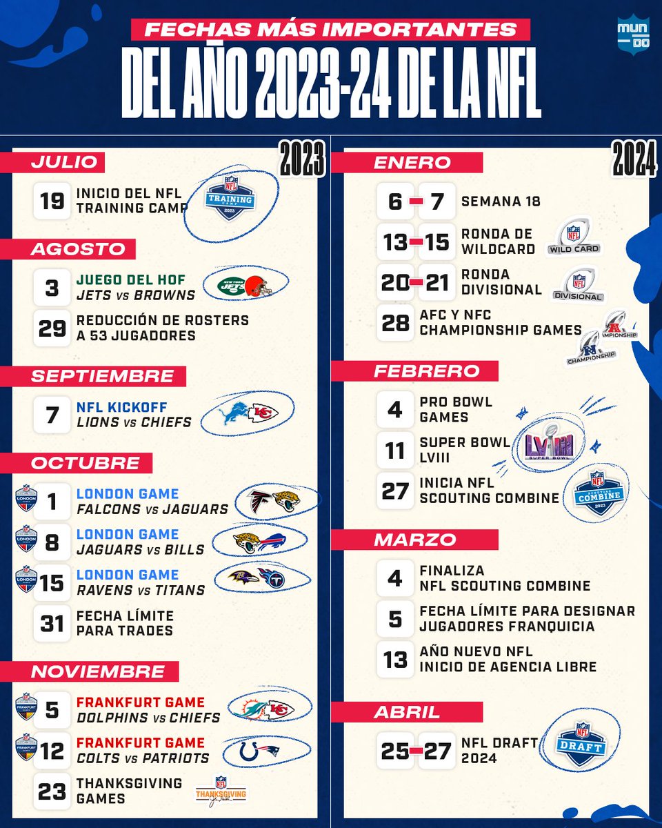 Calendario Nfl 2024 – Tras la disputa de la Super Bowl LVIII entre Kansas City Chiefs y San Francisco 49ers, la NFL ya se encamina hacia la temporada 2024 . With the Super Bowl behind us, that means the NFL Draft is just around the corner. But before each team decides on their draft big board, they expand their evaluations at the NFL Combine. .